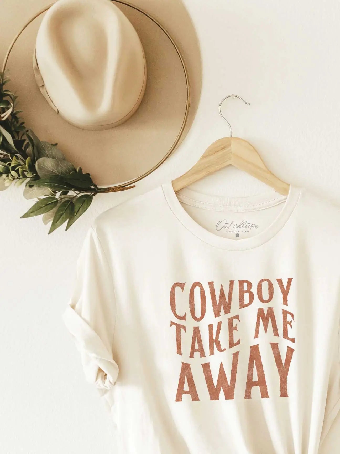 Say it loud and proud with the Cowboy Take Me Away Graphic Tee—a soft, relaxed fit tee that’s as easygoing as a western sunset. With its hand screen-printed lettering and vintage vibe, this tee is perfect for pairing with denim, boots, or layered under a shacket for effortless cowgirl style.